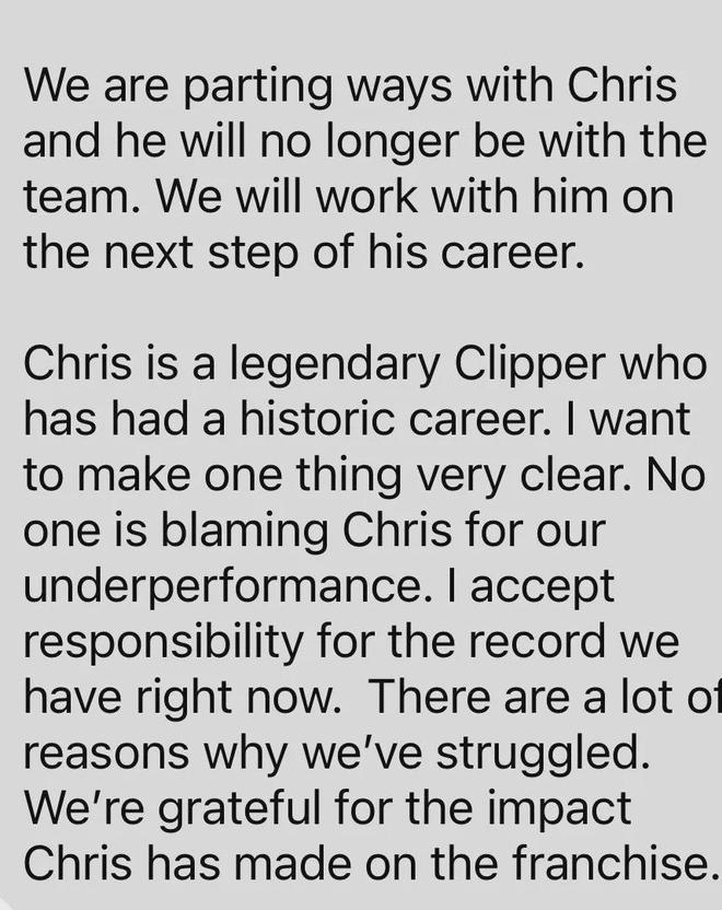 快船正式官宣:和保罗分道扬镳,将协助他规划职业生涯下一步。